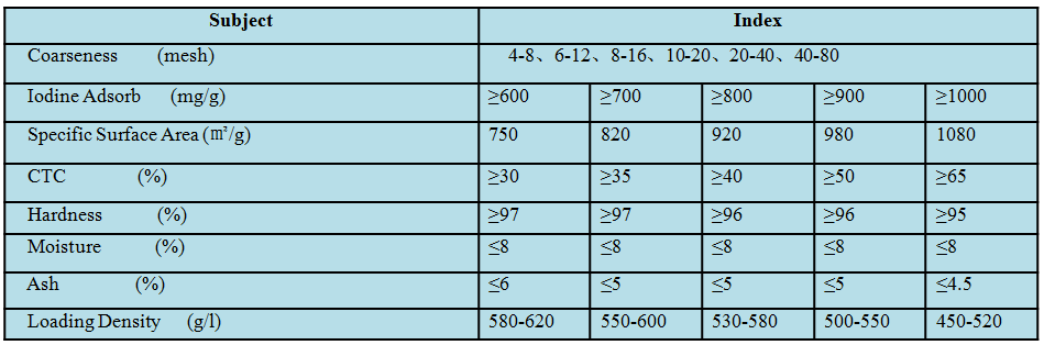 This product use high quality apricot shell, olives shell, walnut shell and palm shell as raw material and manufactured through high temperature carbonization and steam activation. Its appearance is amorphous particles or powder. It has developed pore structure, great specific surface area, high adsorption speed and capacity, as well as easy to regenerate.?