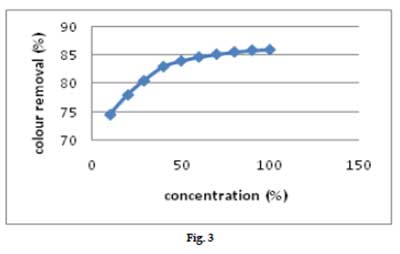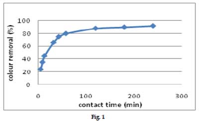 初始濃度對顏色去除的影響如圖3所示。從圖中可以明顯看出,在初始階段,顏色去除是快速的。此外,對于相同的平衡時間,對于初始濃度的較大值,顏色去除率較高,或者較低濃度的吸附百分比越多,并且隨著初始濃度的增加而降低。這可能是由于以下事實:對于固定的活性炭劑量,總有效吸附位點受到限制,從而吸附幾乎相同量的吸附物,從而導致吸附物的吸收百分比降低,相應于初始吸附物濃度的增加。活性炭在1小時內達到約97%的顏色去除。