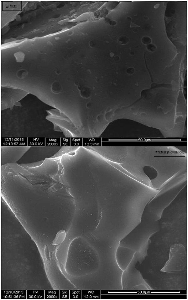 圖2.對活性炭和活性炭氫氧化鉀固體堿催化劑獲得的SEM圖像。